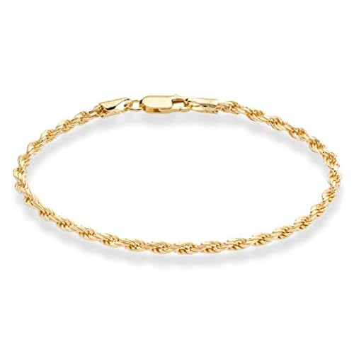 Miabella 18K Gold Plated 925 Sterling Silver Italian 2mm, 3mm Diamond-Cut Braided Rope Chain Anklet Ankle Bracelet for Women, 925 Made in Italy