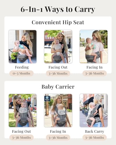 MOMTORY StowNGO Pro Baby Carrier, Safety-Certified 6-in-1 Baby Carrier Newborn to Toddler, Detachable Baby Holder Carrier with Hip Seat, Ergonomic Cozy Baby Front and Back Carrier for 7-50lbs