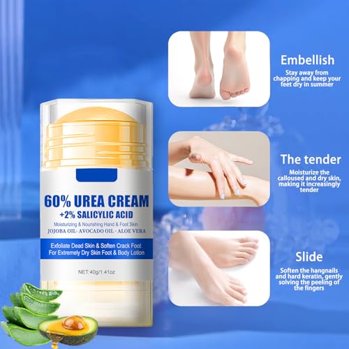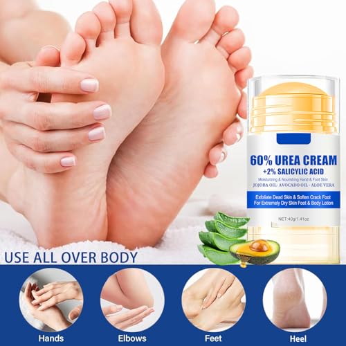 60% Urea & 2% Salicylic Acid: Formulated with 60% urea, this cream deeply hydrates and softens extremely dry, cracked and repairs skin while reducing calluses. The 2% salicylic acid gently exfoliates dead skin cells, leaving skin smoother and more refined. Apply daily to feel skin become visibly softer within days