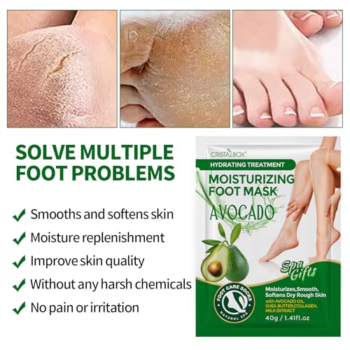 Hydrating Foot Mask for Foot Care Spa Gifts:Natural plant ingredients,shea butter,aloe,milk extract,collagen. This rich, deeply hydrating and moisturizing foot mask leaves feet smooth and rejuvenated. Leaves your feet hydrated and comfortable throughout the day