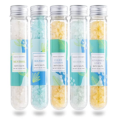 RELAX AND REFRESH- Delight your senses and relax at home with this aromatherapy bath salt set from Beauty Concepts. These salts will immediately reduce stress and anxiety, while relieving any muscle soreness.