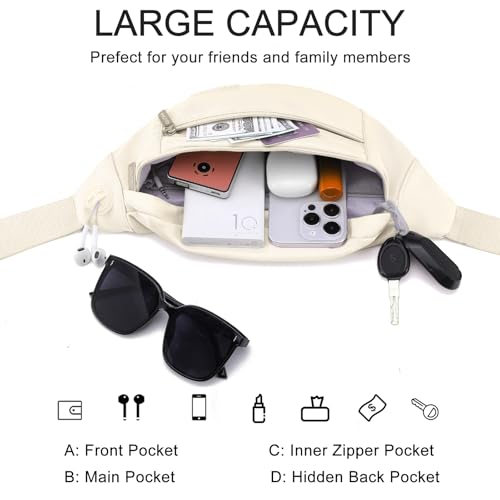 Best Gifts for Women Men,Enjoy Various Activities and Festival Hands-Free — The Fanny Pack size is about 14.3″x 5.9″ x 3.5″ with 4(Four) zippered pockets perfect for most people who want to be hands free to carry the most needed items,include all size of phone, passport, keys,ID and other small items.Perfect for various activities such as Shopping,Traveling,Walking,Cycling,Hiking,Holidays,Festivals and so on.A great ThanksGiving and Christmas Gift for Women Men and Family.
