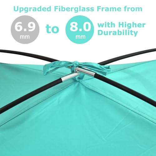 Thickened Poles for Added Stability: The upgraded fiberglass frame features 8.0mm rods, which are thicker and more sturdy than ordinary beach tents. It supports the beach shelter stably standing by itself and keeps its shape after a long time of use