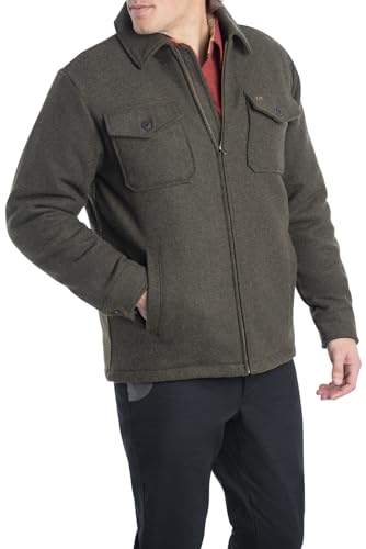 Made from a durable wool and polyester blend, our Men’s Tough As Buck Outdoorsmen Jacket honors the legacy of hunters who braved winter’s harshest challenges. Coat features a fully lined body with thick sherpa for warmth, insulated quilted taffeta sleeves for ease of movement, and adjustable two-button cuffs with hand-warmer pockets. Finished with a durable antique brass zipper, this jacket is built to stand the test of time. Big & Tall sizes are designed for men over 6’2″ and add 2″ in body length and 1-1⁄2″ in sleeve length. Dry clean only.