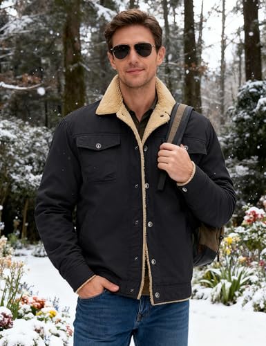 MAGNIVIT Men’s Cotton Cargo Jacket Winter Sherpa Fleece Lined Work Jacket Coats with 5 Pockets