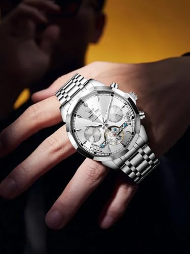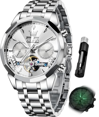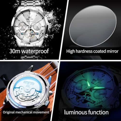 OLEVS Mechanical Men Watch Chronograph Diamond Tourbillon Date Moon Phase Adjustable Bracelet Gift Multi-Function Blue/Black/Gold/Silver Face Watch For Men