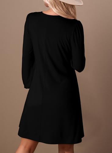 Dokotoo Dresses for Women Crew Neck Long Sleeve A Line Shift Dress Solid Color Loose Fit Mini Dress