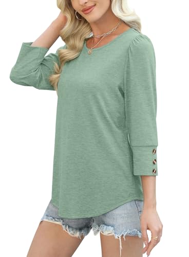 OFEEFAN Womens Tops 3/4 Sleeve with Buttons Dressy Casual Blouses Summer Outfits Beach Vacation Plus Size Spring Clothes