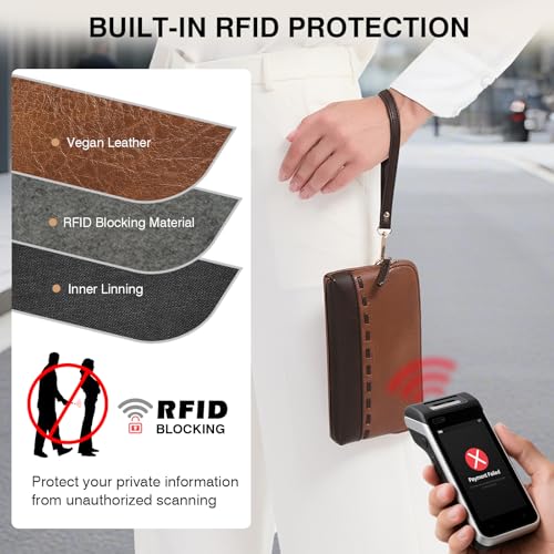 Marvolia Vegan Leather Wristlet Purse for Women RFID Blocking Travel Bag Small Wallet Clutch Purses