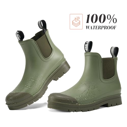 HISEA Women’s Short Rain Boots Fashion Waterproof Chelsea Boots Ankle Garden Shoes for Ladies Non Slip Outdoor Work Booties Lightweight Rubber Rainboots with Comfort Insole