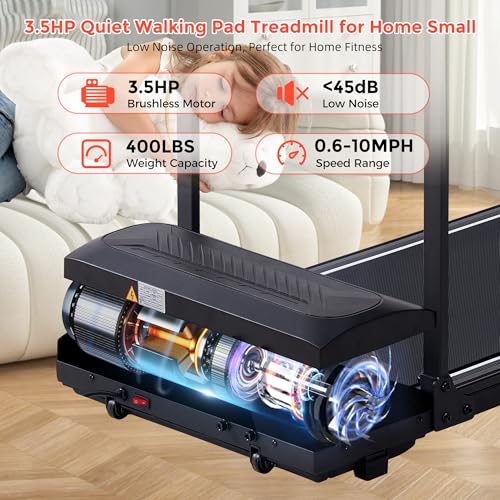 【High-Power, Heavy-Duty Compact Trainer】Powered by a 3.5HP motor, this electric treadmill reaches 0.6–10.0MPH and supports 400LBS. Ideal as a walking pad treadmill with handle bar or portable treadmill with handles, it delivers quiet, stable power fit for treadmills for home small and compact treadmill workouts.