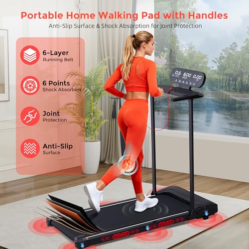 【Built to Last, Engineered for Endurance】This treadmill with handles features a reinforced steel frame and strong motor, also serving as a walking pad with handle for years of daily use. Ideal for treadmills for home small or portable treadmill setups, it’s wear-resistant, stable, and smooth for lasting workouts.