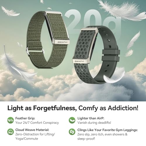24/7 FEATHER-LIGHT COMFORT—Revolutionary 25g design (50% lighter than competitors) feels invisible. Cloud-like skin-friendly material ensures zero discomfort during workouts/commuting/sleep. Patented dual strap system: nylon (sweat-proof) + silicone (hypoallergenic). Stays secure like sportswear – no slipping/irritation. Shower-safe for true 24/7 comfort.
