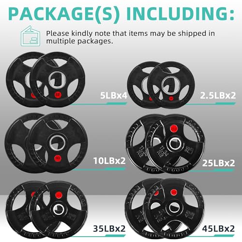 255Lbs SET: Includes 2x 2.5Lbs, 4x 5Lbs, 2x 10Lbs, 2x 25Lbs, 2x 35Lbs, 2x 45Lbs