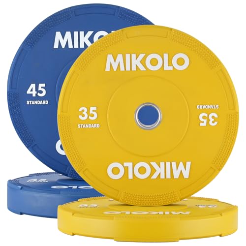 Mikolo Olympic Bumper Plates & Barbell Plates 2-Inch Weight Plate Set – Steel Insert, Low-Bounce & Quiet for Home Gym Strength Training (Weights: 45 * 2-230LB)