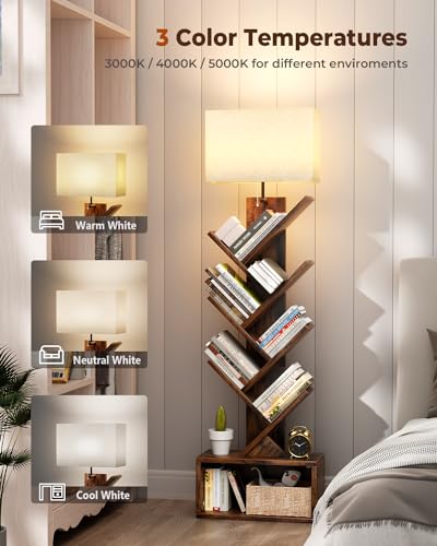 Adaptive Lighting for All Day: Illuminate your reading experience with built-in adjustable lamp; Our tall bookshelf tower features three color temperature settings, ensuring optimal lighting for reading and ambiance at anywhere of day or night