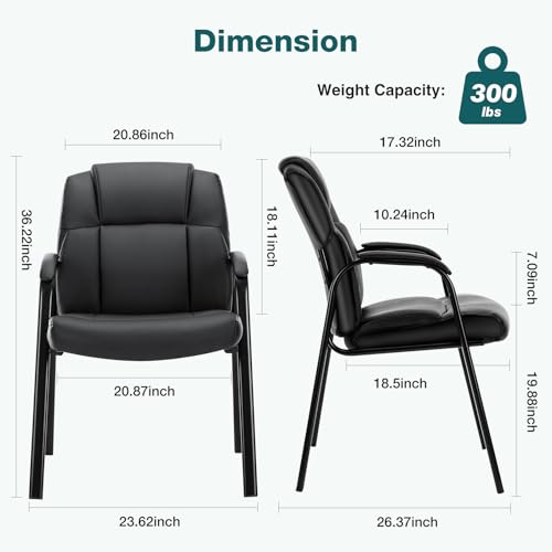 【Fashionable and beautiful】The office guest chair is made of black leather and black metal frame, beautiful appearance, can be integrated with various decorations. The reception chair is the first choice for conference room, office, Waiting room, study room, library and so on.