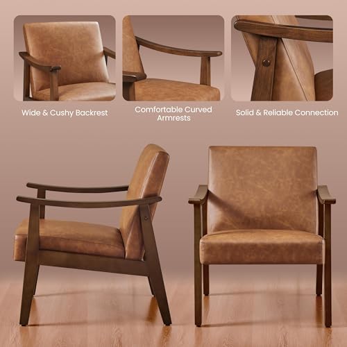 Mid-century Modern Silhouette: With a nod to mid-century modern sensibilities, this living room chair showcases a low-profile seat, angled wood legs, and retro faux leather upholstery, which will instantly become a focal point in your home.