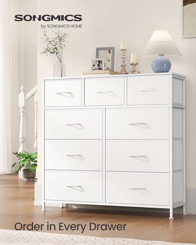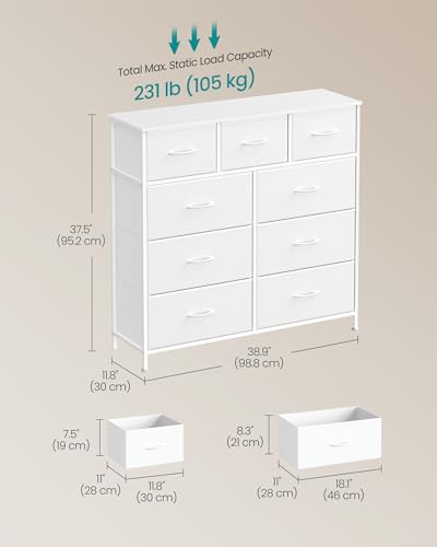 Solid Construction: Crafted with a steel frame, particleboard top, and non-woven fabric drawers with MDF structures, this drawer tower is durable and sturdy, with the top holding up to 30 kg, each large drawer 10 kg, and each small drawer 5 kg