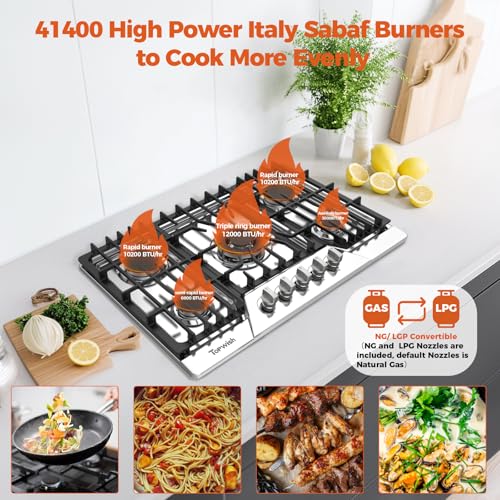 【Dual Fuel Compatibility】Designed for both natural gas and propane (LPG), the Topwish gas stove top comes with all necessary nozzles and regulators for easy conversion (default nozzles are for natural gas). It is ideal for residential kitchens, outdoor cooking stations, RVs, cabins, and mobile homes